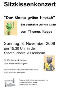 „Der kleine grüne Frosch“, Eine Geschichte und viele Lieder von Thomas Koppe. Impressionen und Presseartikel.