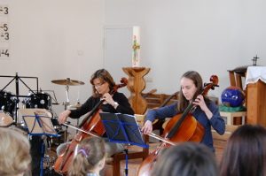 Celloschülerin Inga Marie Pfuhl spielte gemeinsam mit ihrer Lehrerin Petra Köhs Adagio und Allegro aus der Sonate C-Dur des italienischen Barockkomponisten Benedetto Marcello. Aus der Klasse von Dong-Rong Zheng-Halir folgte am Flügel Mattea Grundig, die „Retour“ aus den 25 Etuden Op 100 von Friedrich Burgmüller und „La dispute“ von Yann Tiersen vortrug. Anschließend spielte Alexander Schaffstein die „Barkarole g-Moll“ aus den Jahreszeiten des romantischen Komponisten Peter Tschaikowsky.
